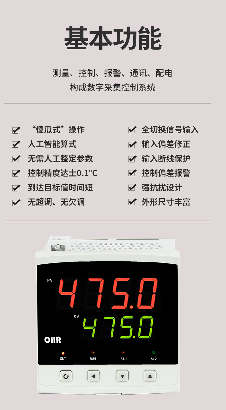 虹潤公司是專業生產溫控器的國家專精特新“小巨人”企業。生產的傻瓜式智能溫控器,具有傻瓜式操作,真正人工智能算式,無需人工整定參數,控制精度可達±0.1°C,高抗干擾等特點。產品獲得模糊PID控制儀及控制方法、人工智能調節器、智能化控制器、移相觸發控制器、閥門自動手動無擾動操作控制方法及裝置等5項國家發明專利,主持起草工業過程控制系統用模擬輸入兩位或多位輸出儀表、物聯網智能溫度儀表通用技術條件、工業過程測量和控制系統用智能調節器等3項國家標準,以及通信系統多通道數據采集控制終端規范軍用標準,參與國際5G標準制定,取得傻瓜式模糊PID調節儀等3項相關軟件著作權。產品廣泛應用于電力、石化,冶金、制藥、食品等幾乎所有工業現場,實現精準控溫,保障生產安全與質量。