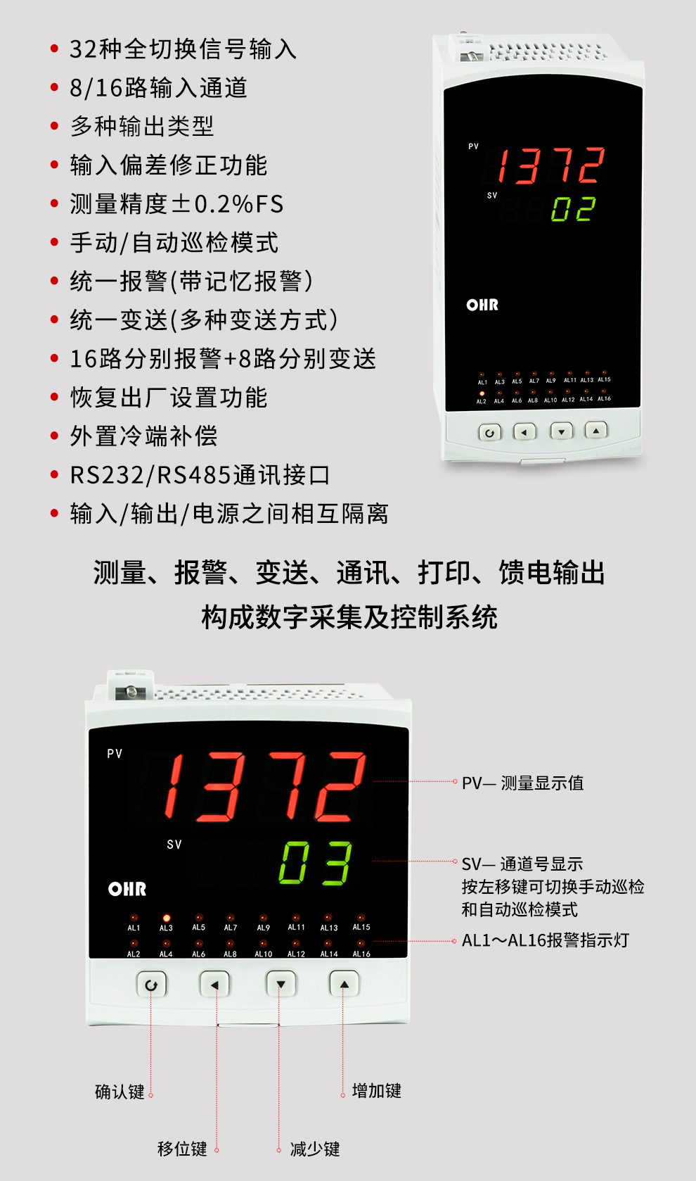 虹潤公司是專業生產多路溫度巡檢儀的國家專精特新“小巨人”企業,生產的增強型多路巡檢儀,具有8路/16路測量通道,全切換信號輸入,多種輸出類型,高抗干擾,RS485/RS232通訊等特點。產品獲得巡回檢測顯示方法及裝置、儀表殼體等2項國家發明專利,主持起草工業過程控制系統用模擬輸入兩位或多位輸出儀表、物聯網智能溫度儀表通用技術條件等2項國家標準,以及通信系統多通道數據采集控制終端規范軍用標準,參與國際5G標準制定,取得多回路測量顯示控制儀等3項相關軟件著作權。產品廣泛應用于電力、石化、冶金、制藥、水處理、機械配套等各種工業現場。