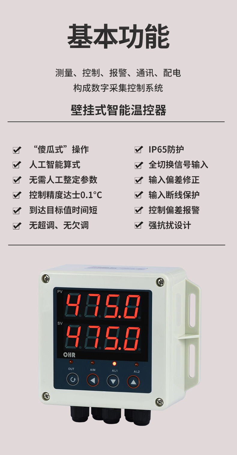 虹潤公司是專業生產溫控器的國家專精特新“小巨人”企業。生產的導軌式智能溫控器,具有傻瓜式操作,真正人工智能算式,控制精度達士0.1°C,導軌壁掛共用等特點。產品獲得模糊PID控制儀及控制方法、人工智能調節器、智能化控制器、移相觸發控制器、閥門自動手動無擾動操作控制方法及裝置等5項國家發明專利,主持起草主持起草工業過程控制系統用模擬輸入兩位或多位輸出儀表、物聯網智能溫度儀表通用技術條件、工業過程測量和控制系統用智能調節器等3項國家標準,以及通信系統多通道數據采集控制終端規范軍用標準。參與國際5G標準制定,取得傻瓜式PID調節儀等3項相關軟件著作權。產品廣泛應用于電力、石化,冶金、制藥、食品等幾乎所有工業現場,實現精準控溫,保障生產安全與質量。