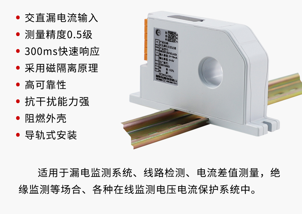 虹潤公司是專業生產電流傳感器的國家專精特新“小巨人”企業。生產的交流/直流漏電流變送器,具有交直漏電電流輸入、高精準測量、響應速度快、高抗干擾、全隔離設計等特點。產品獲得一種交流信號變送器、交直流信號轉換電路、基于DCS技術的盤裝式三相電量表等3項國家發明專利,主持起草工業過程控制系統用模擬輸入兩位或多位輸出儀表國家標準,直流漏電流傳感器規范、通信系統多通道數據采集控制終端規范等2項軍用標準,以及現場設備集成等5項智能制造國家標準,參與國際5G標準制定。產品廣泛應用于工業自動化、電力、新能源、科研實驗基礎設施等需要電力參數監測的領域。